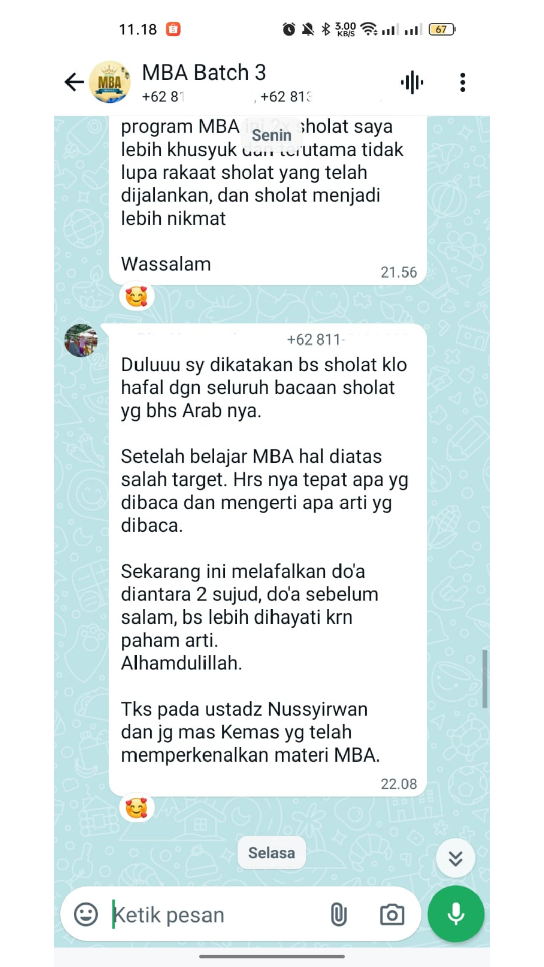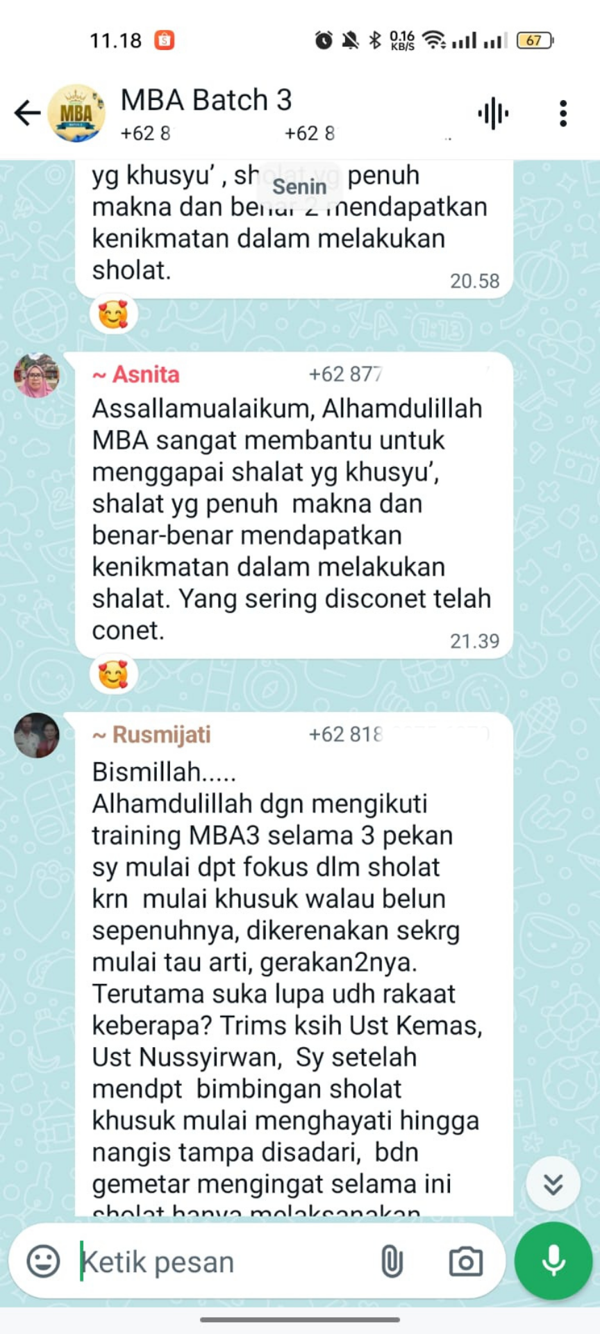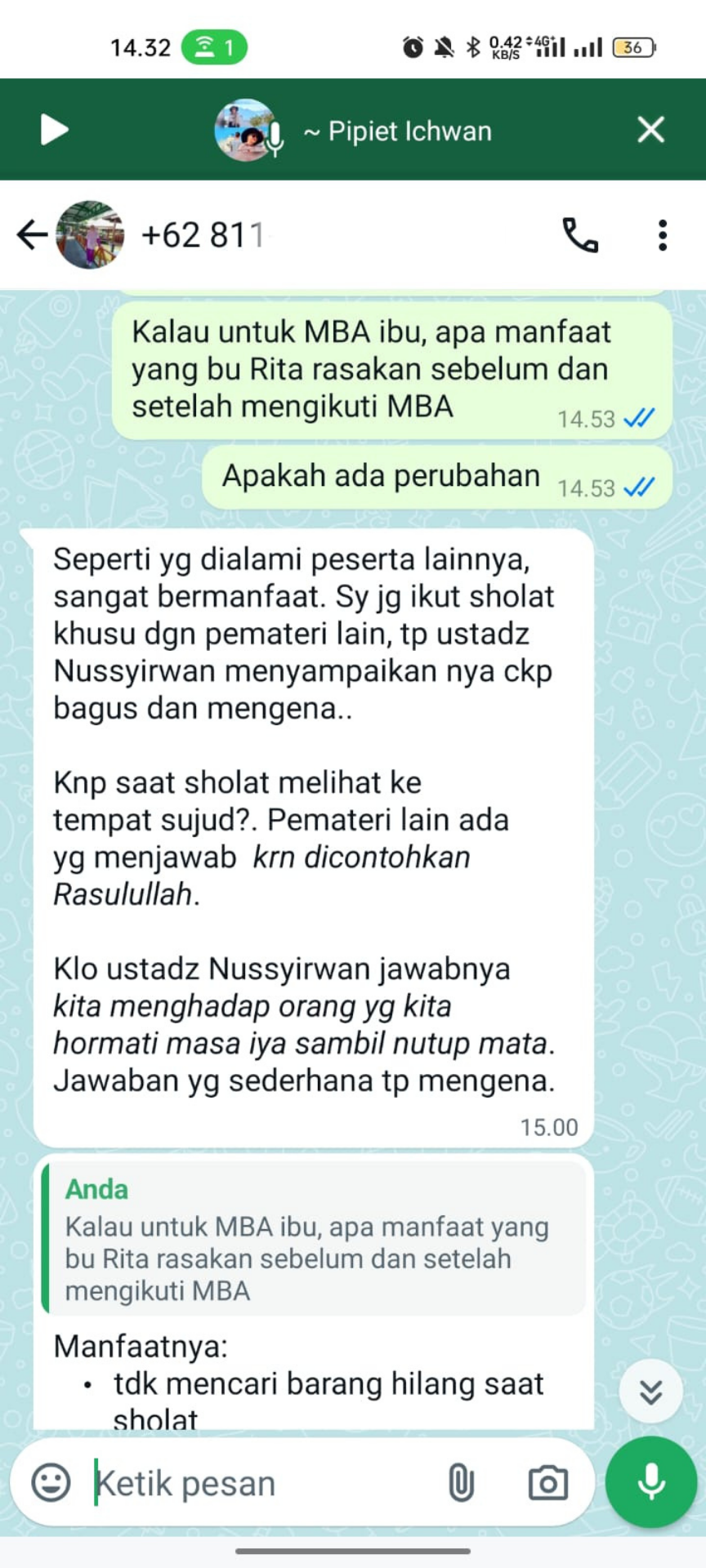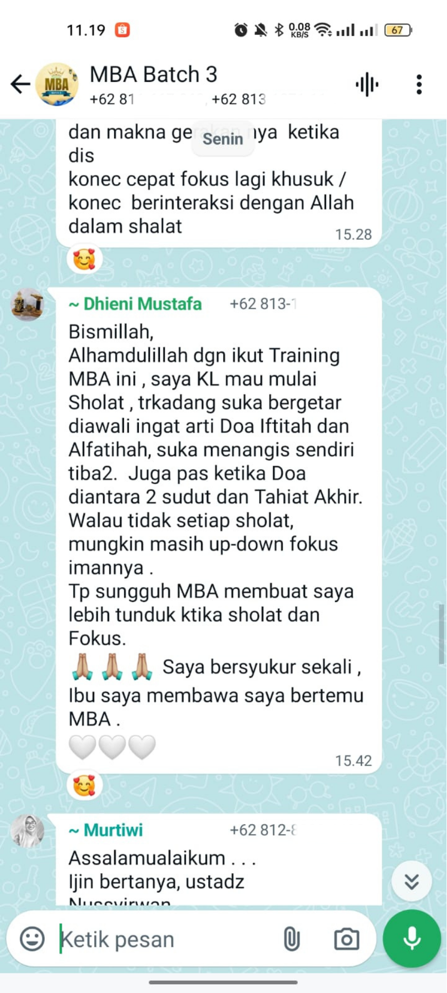 Program MBA (Menikmati Berjumpa Allah) adalah pelatihan online yang dirancang khusus untuk membantu kaum muslimin meningkatkan kualitas sholat mereka menjadi lebih khusyuk dan bermakna. Program ini berlangsung selama 3 pekan, terdiri dari 6 hari pertemuan Zoom interaktif dan 10 hari bimbingan intensif melalui grup WhatsApp.